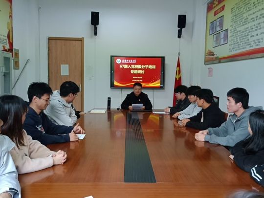 10月29日,学生第一党支部组织第67期入党积极分子开展专题研讨,研讨主题为学习习近平新时代中国特色社会主义思想和党的二十届三中、四中全会精神,结合党史知识、先锋模范人物事迹以及新时代青年的使命与担当。学生第一党支部的第67期入党积极分子培训班全体学员参加研讨,会议由学生第一党支部书记徐伟主持。