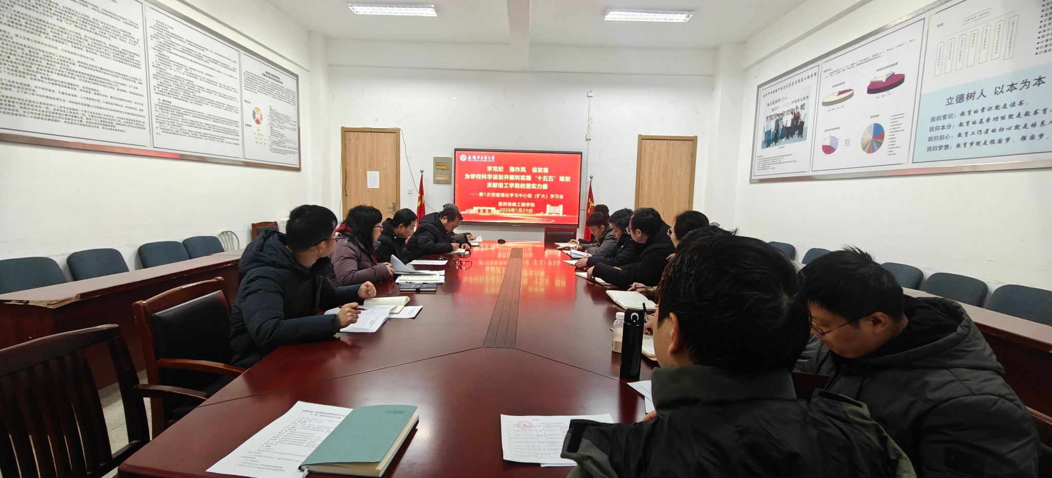 1月21日上午,医药信息工程学院召开党委理论学习中心组2026年第一次(扩大)学习会,学院领导班子成员、党委委员、各党支部书记参加会议,会议由学院党委书记高霞主持。