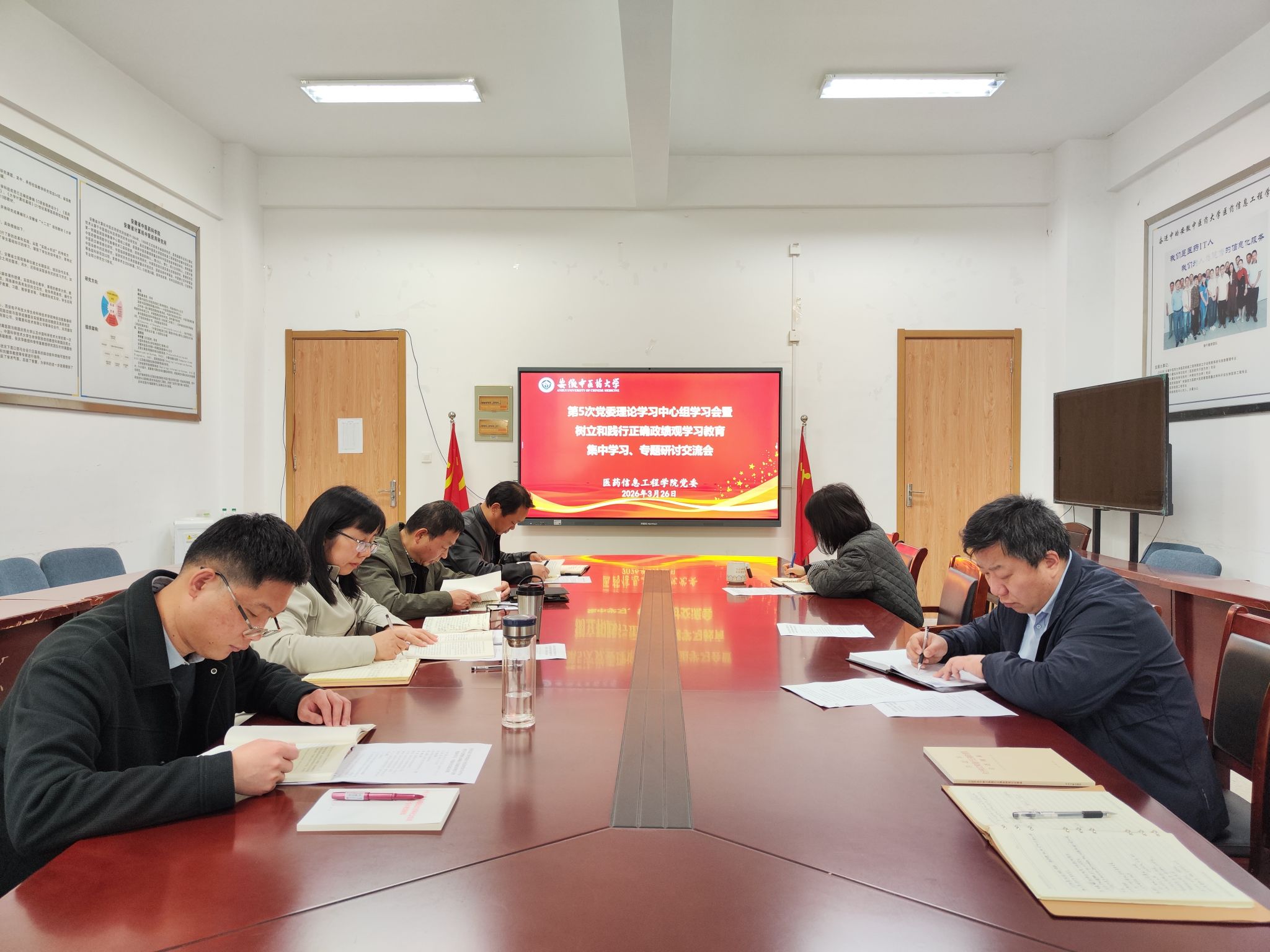 3月26日下午,医药信息工程学院召开第5次党委理论学习中心组学习会暨树立和践行正确政绩观学习教育读书班集中学习、专题研讨交流会,集体学习《习近平关于树立和践行正确政绩观论述摘编》和《习近平总书记地方工作期间坚持正确政绩观生动实践》。会议由党委书记高霞主持,学院党政领导班子成员、党委委员参加会议。