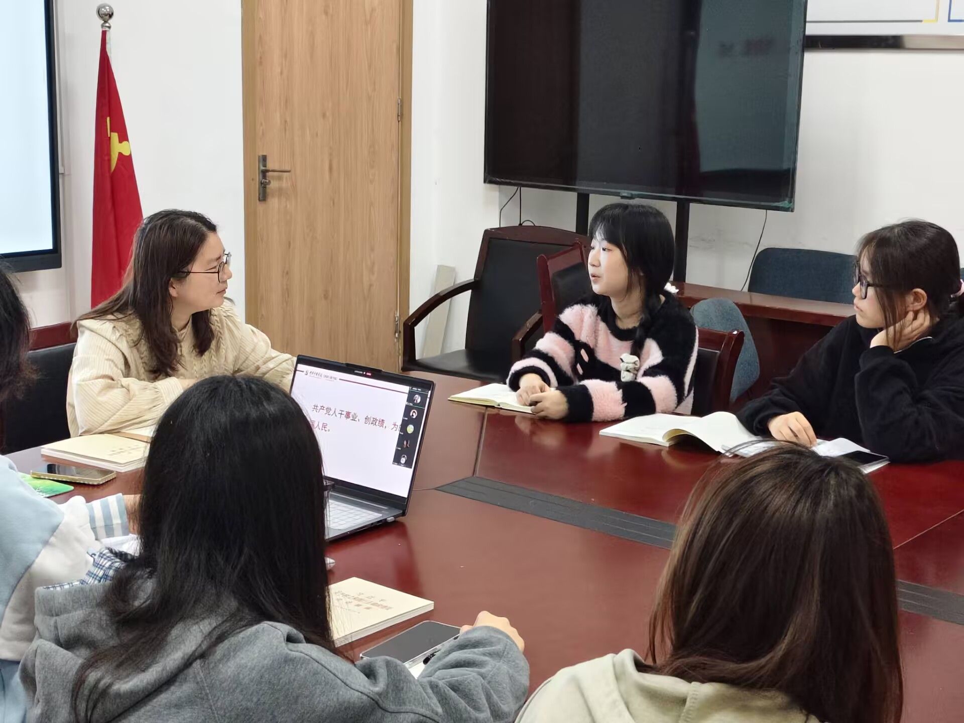 在研讨交流环节,学生党员围绕“青年群体为什么要树立正确政绩观”“如何践行正确政绩观,做有为青年”等主题展开热烈讨论。党员夏席梅在发言中表示,树立正确政绩观是扣好人生“第一粒扣子”的关键内容,青年的政绩观不应体现在获得多少荣誉,而应体现在为集体、为同学做了多少实实在在的事情。
