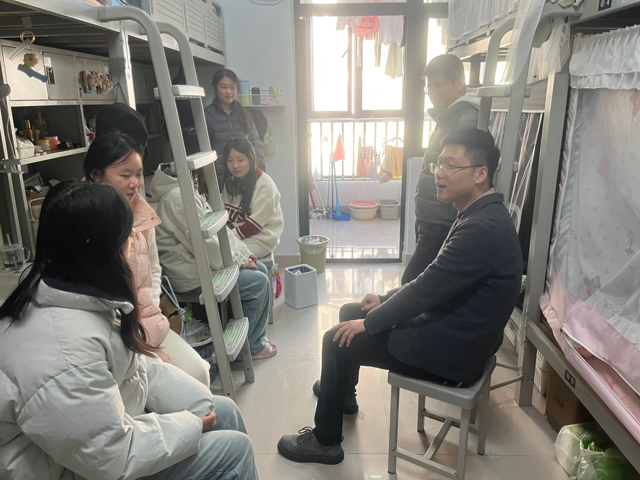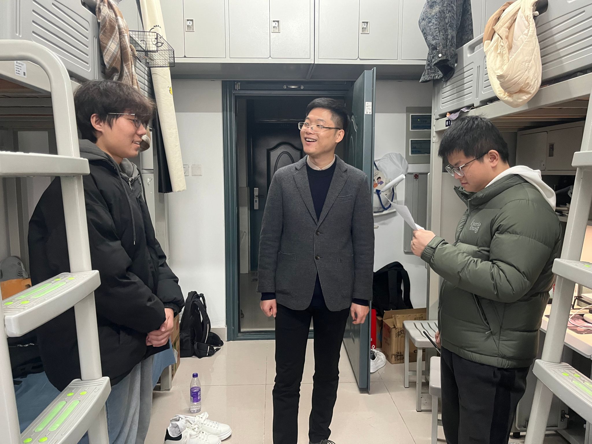 为深入了解学生生活状况、思想动态与实际需求,加强学院与学生之间的联系,营造安全、和谐、积极向上的校园环境,11月20日,学院党委副书记王向阳带领辅导员们深入走访学生宿舍,了解学生诉求,并将学院的牵挂与殷切关怀传递到每一位学子身边。