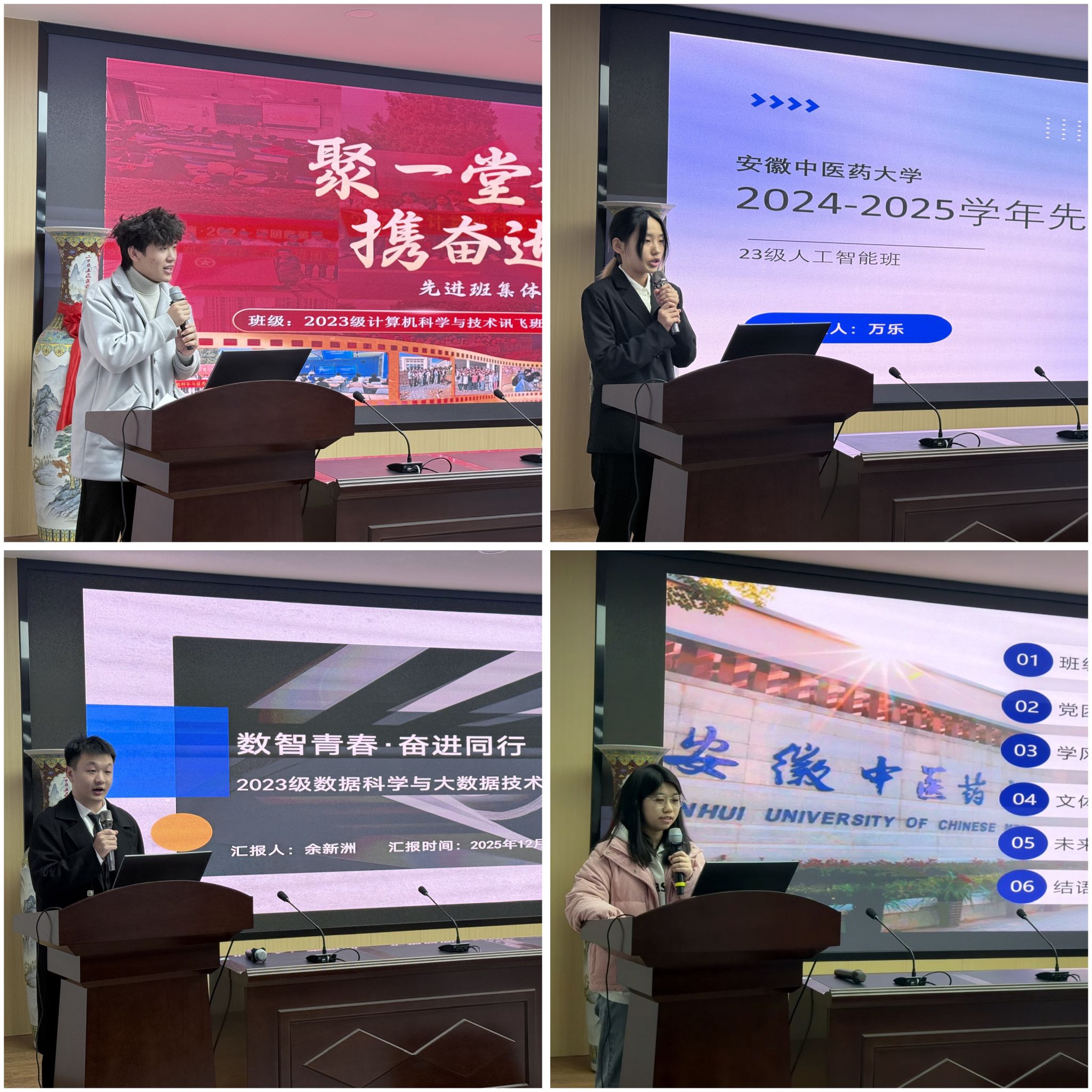 为加强班级建设,树立先进典型,营造积极向上、团结进取的学院氛围,医药信息工程学院于12月18日举办2024-2025学年先进班集体评选决赛。学院党委书记高霞,党委副书记王向阳,各班级辅导员参加,与在场同学共同见证了这一展示班级风采、凝聚集体力量的盛会。