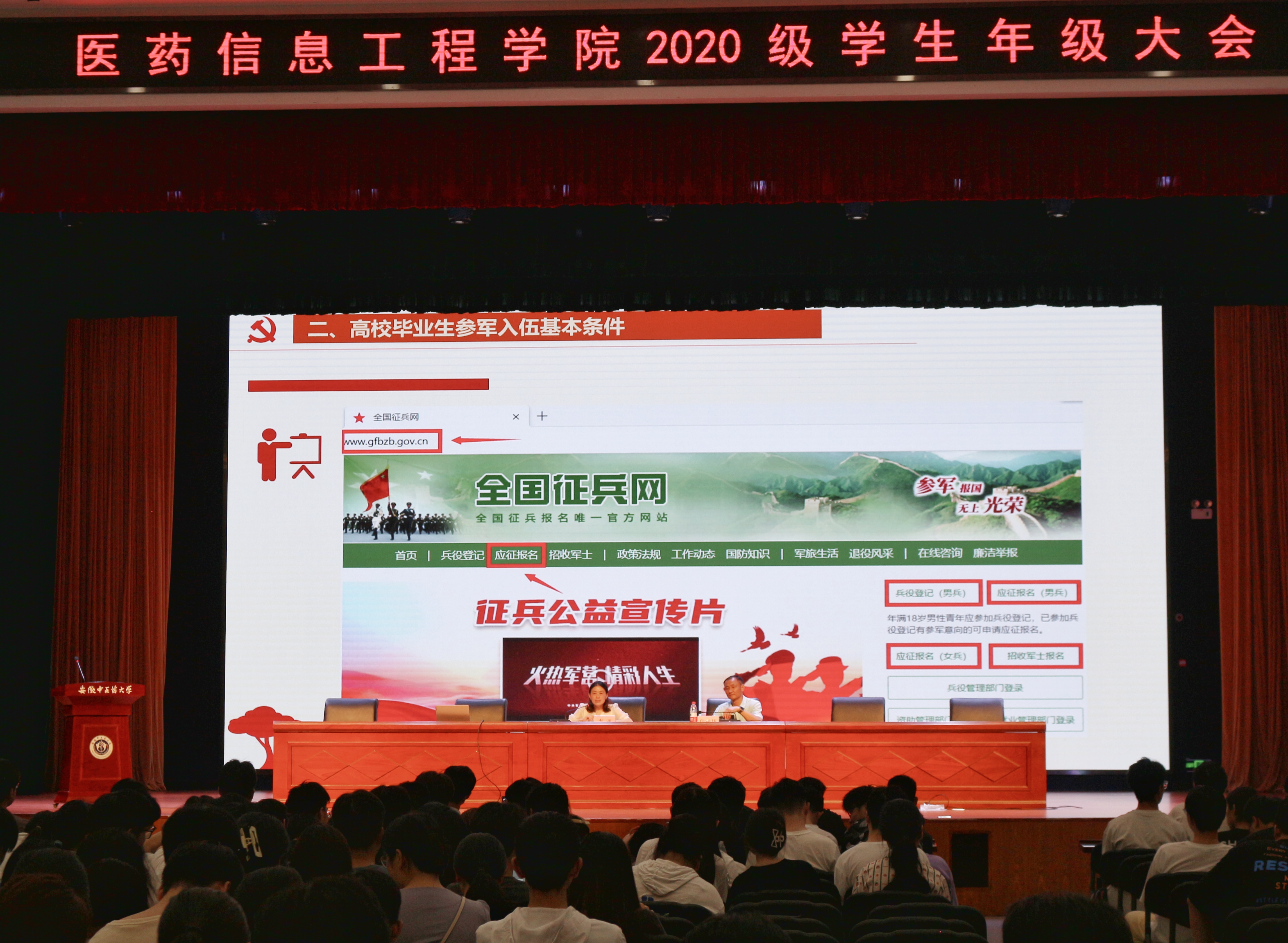 为扎实做好学院征兵工作,宣传国家大学生征兵入伍政策,激发大学生的从军热情,5月31日,医药信息工程学院邀请学生处副处长詹钟华为2020级学生做应届毕业生应征入伍政策宣讲。