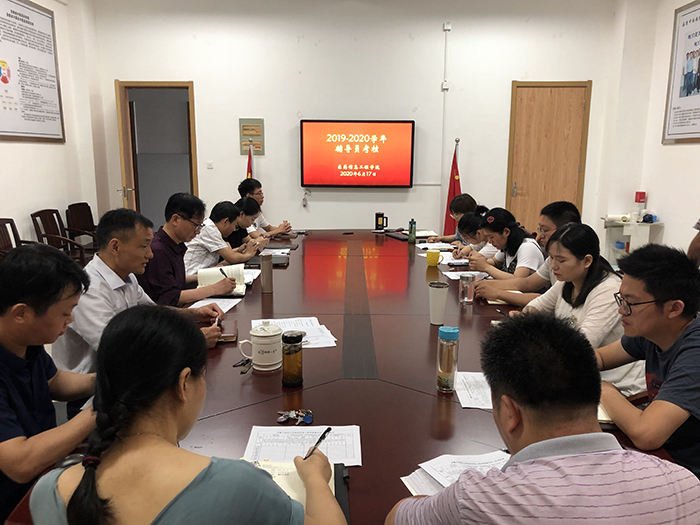6月17日,医药信息工程学院进行了2019-2020学年辅导员考核,学院党政领导吴成海、阚红星、詹中华、阚峻岭、朱淮出席,党委委员欧阳婷、金力,教师代表欧凤霞、武红利,一起担任本次考核的评委。学院全体专兼职辅导员参加了考核汇报。会议由党委副书记詹中华主持。