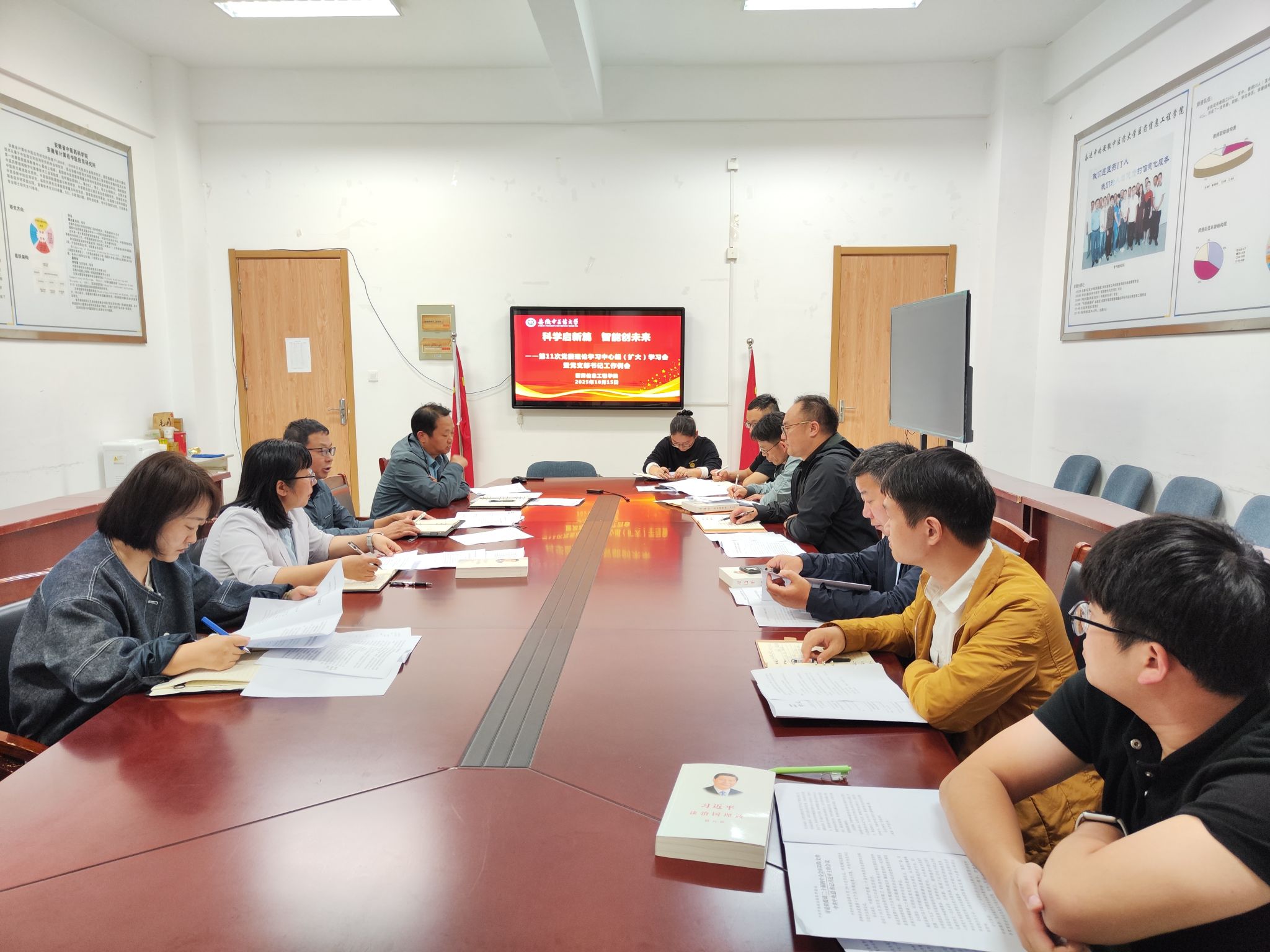 10月15日下午,医药信息工程学院召开党委理论学习中心组2025年第十一次(扩大)学习会暨党支部书记工作例会,会议由学院党委书记高霞主持,学院党政领导、党委委员、各党支部书记参加会议。