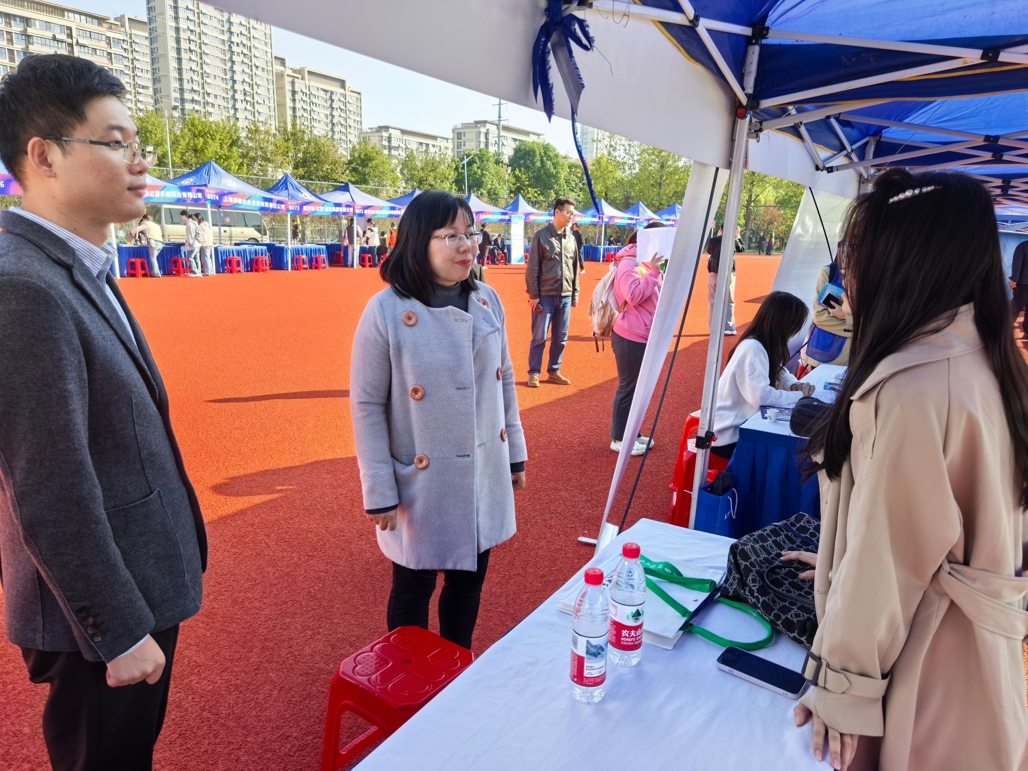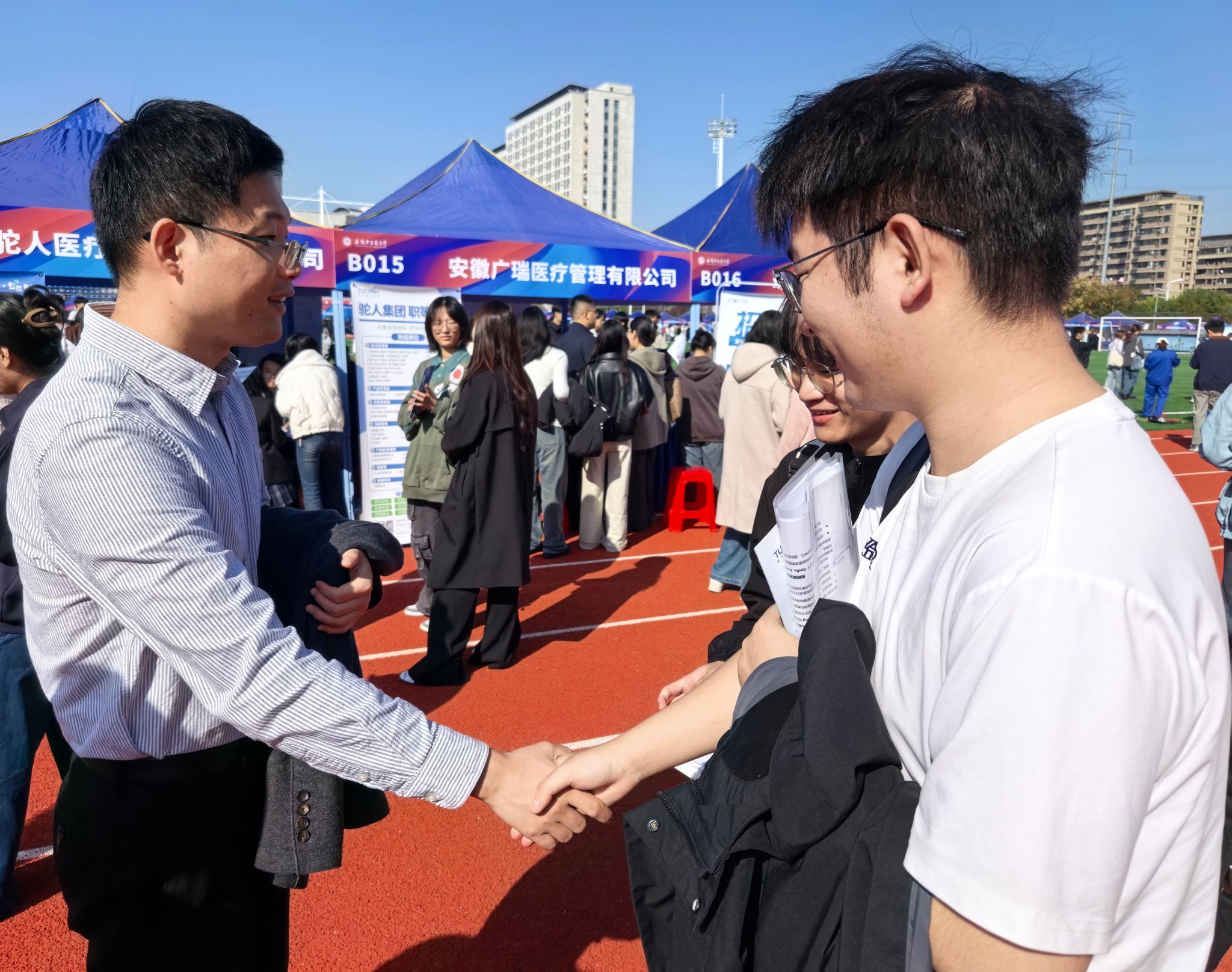 为切实搭建毕业生与用人单位的精准对接平台,助力2026届毕业生顺利开启职业征程,10月24日,人才兴皖 ‘就’在江淮”安徽省2026届高校毕业生省级系列就业招聘会之中医药类秋季招聘会在少荃湖校区运动场隆重举行。医药信息工程学院高度重视此次招聘活动,精心组织2026届毕业生参加,学院党委书记高霞、党委副书记王向阳带领全体毕业班辅导员深入招聘会现场,为毕业生求职保驾护航,用实际行动为毕业生就业“搭桥梁、送服务”。