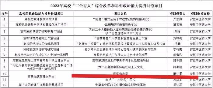 日前,安徽省委教育工委、安徽省教育厅公布了2023年高校“三全育人”综合改革和思想政治能力提升计划项目评审结果,学院1个项目获批立项为精品教材建设项目。