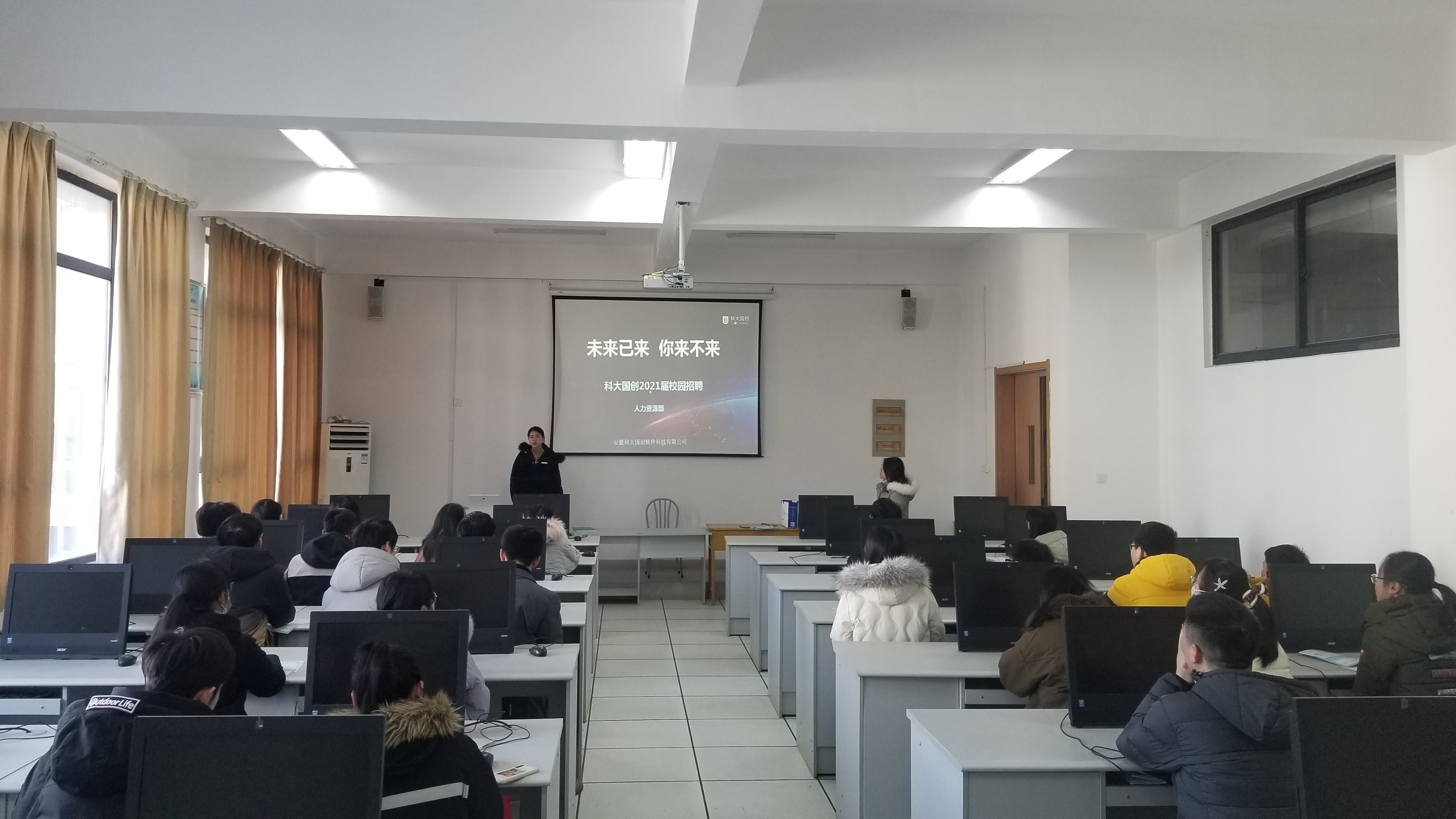 宣讲会上,科大国创人力资源部负责人范娜播放完公司宣传片后,对公司的发展历史、产品业务、福利待遇和岗位信息向同学们进行了介绍。宣讲会结束后,同学们报名参加了笔试和面试。(徐志鹏/文图 吴成海/审核)