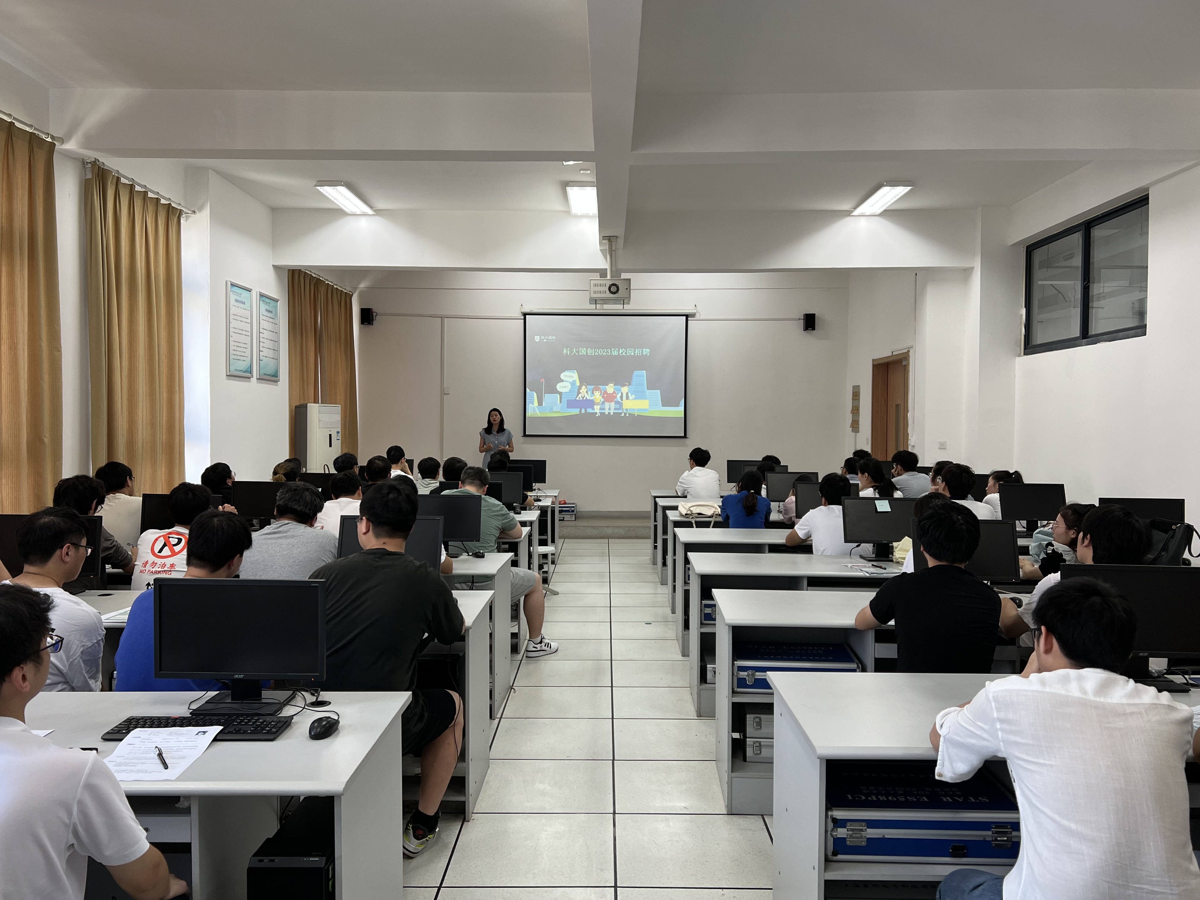 科大国创人力资源部负责人范娜播放了公司的宣传片,并且从公司的发展历史、产品业务、福利待遇、企业文化和岗位设置等方面向同学们进行了介绍,宣讲结束后与同学们进行了交流,解答了同学们的一些疑惑。部分同学参加了公司招聘笔试。(徐志鹏/文图 吴成海/审核)