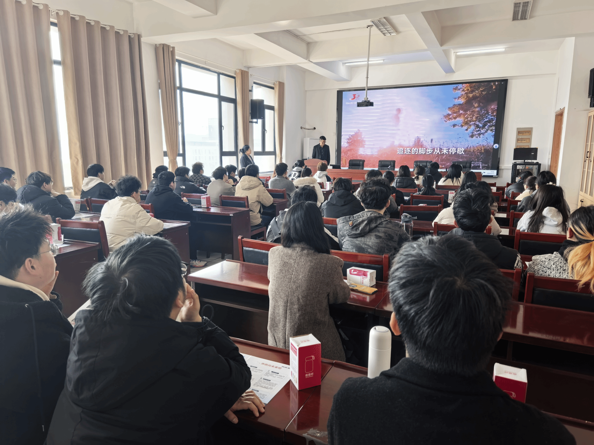 麦迪克斯合肥分公司负责人张腾详细介绍了公司的主营业务、发展布局、核心产品及行业优势,重点解读了本次招聘岗位、任职要求、薪资待遇及职业发展路径。现场同学认真聆听,就岗位细节、晋升机制等问题与企业负责人互动交流,氛围十分热烈。